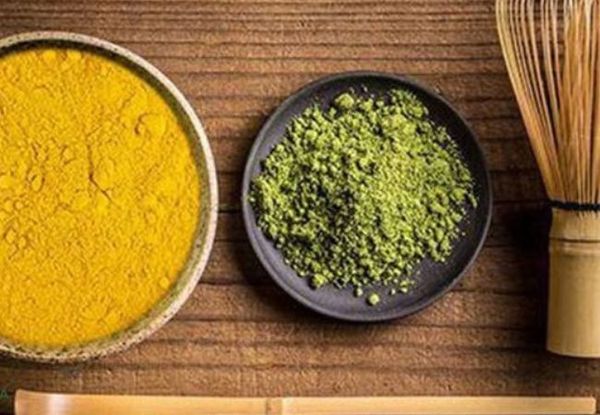 Trộn 1 thìa bột trà xanh và 1 thìa bột nghệ hòa chung vào nước