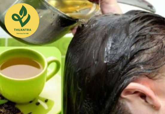 Sau khi gội đầu, xả tóc với nước trà xanh.