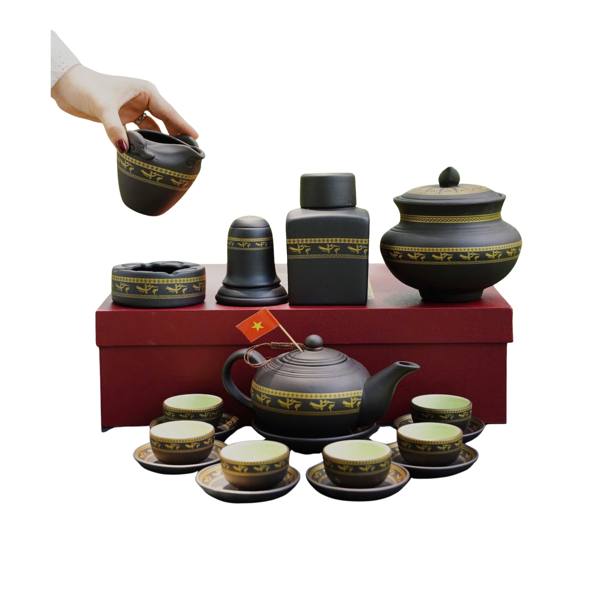 Mỗi chiếc ấm Tử Sa Lạc Hồng là kết quả của quá trình chế tác hoàn toàn thủ công bởi các nghệ nhân làng gốm Bát Tràng – nơi gìn giữ hồn cốt gốm sứ Việt hơn 700 năm. Từng công đoạn đều được thực hiện bằng bàn tay khéo léo: từ nhào đất, tạo hình trên bàn quay ly tâm, đến lắp ghép vòi, quai, nắp.